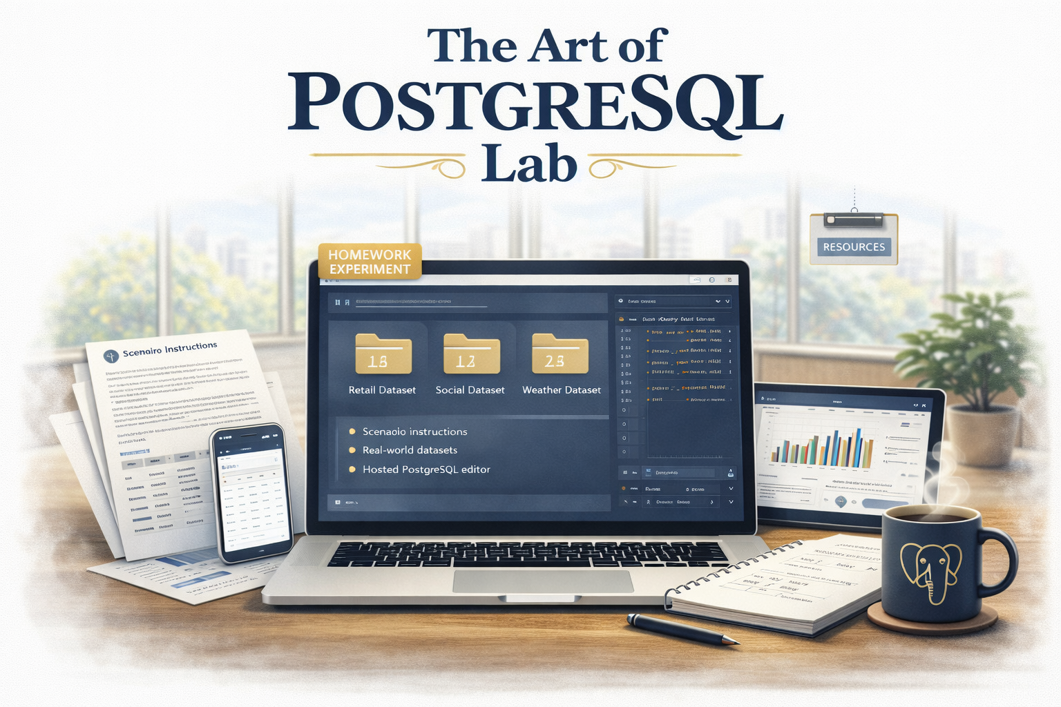 The free, interactive companion lab for The Art of PostgreSQL — practice SQL, performance, and modeling techniques on real datasets